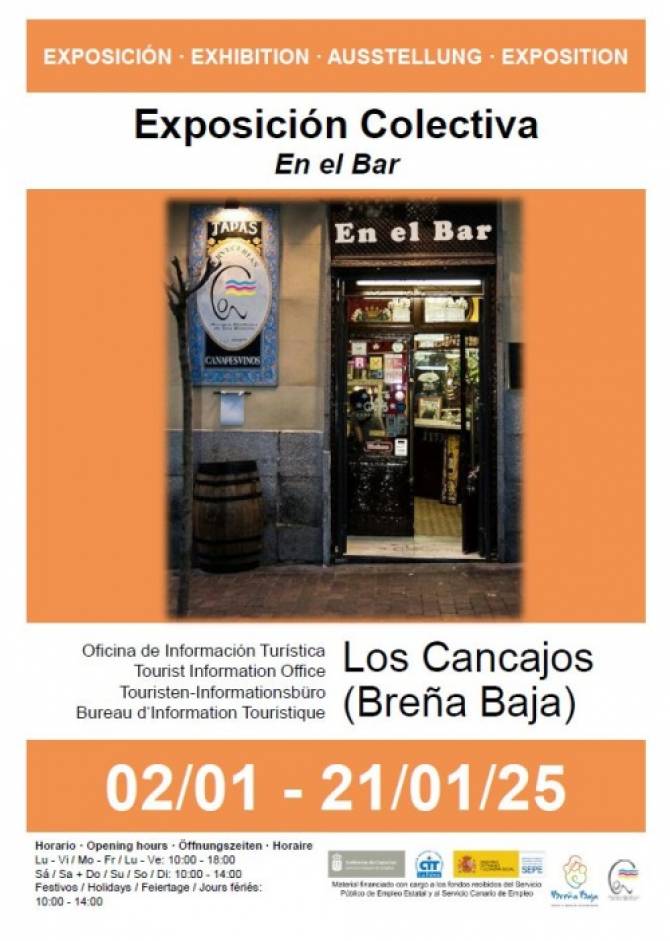 Del 2 al 21 de enero la Oficina de Información Turística de Los Cancajos acoge la Exposición Colectiva de pintura al óleo “En el Bar" por parte de la Asociación “Amigos Pintores de Las Breñas” en los horarios de apertura de la oficina. Con la colaboración del Ayuntamiento de Breña Baja, el Cit Tedote, entre otras entidades.