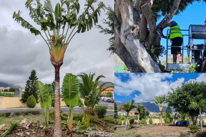 El Ayuntamiento de Tazacorte ha puesto en marcha una actuación integral de poda y mantenimiento en el Puerto, un enclave que llevaba varios años sin una intervención de esta magnitud. El concejal de Planificación Urbanística, Obras y Servicios Municipales y Deportes, Toni Santana, informa que el Consistorio contrató a una empresa especializada en el cuidado de jardines, y en concreto en el tratamiento de palmeras, que finaliza las actuaciones esta semana.