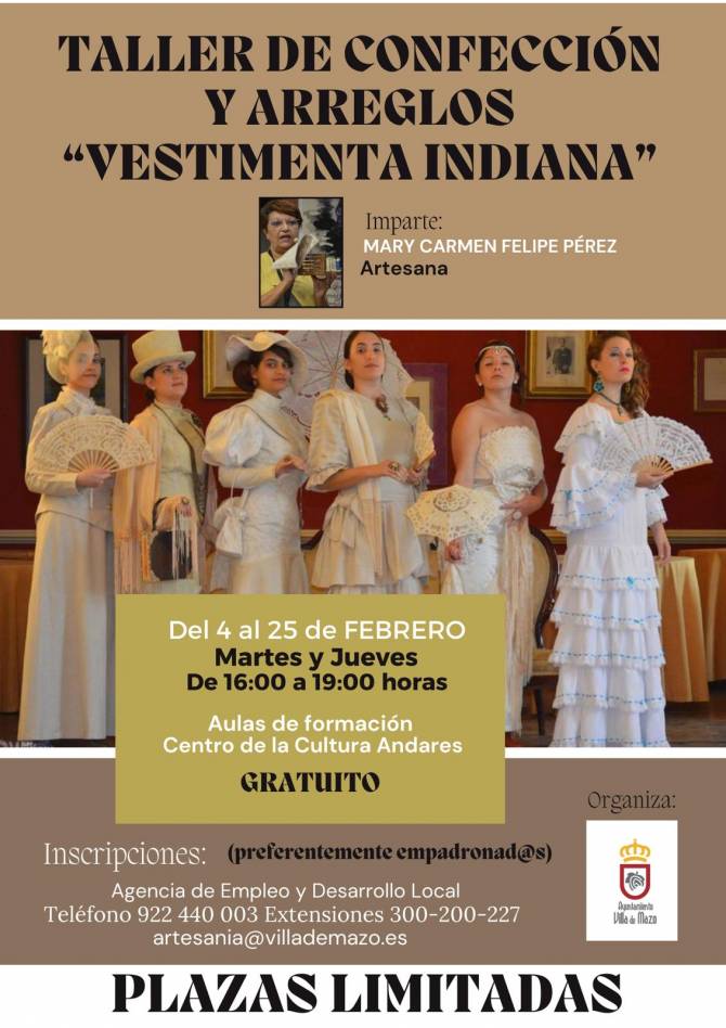 El Ayuntamiento de Villa de Mazo continúa promoviendo la formación y el empleo en el municipio con la puesta en marcha del taller de confección y arreglos de vestimenta indiana, impartido por la artesana local Mary Carmen Felipe Pérez.