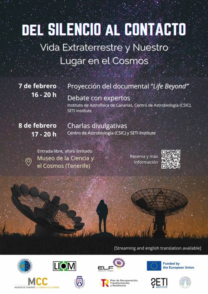 A continuación, un panel de expertos de renombre internacional debatirá sobre cuestiones fundamentales como la definición de vida, las posibilidades de encontrar vida en nuestro sistema solar y más allá, y las implicaciones de un hipotético contacto con civilizaciones alienígenas. Entre ellos, ya están confirmados Carlos Briones, investigador del CSIC en el Centro de Astrobiología (CSIC-INTA, asociado al NASA Astrobiology Program); Zach Murguía, profesor de Ciencias Ambientales en la Montana State University; Antonia Varela, directora del Museo de la Ciencia y el Cosmos e investigadora del IAC; María Rosa Zapatero, investigadora del CSIC en el Centro de Astrobiología (CSIC-INTA, asociado al NASA Astrobiology Program); Héctor Socas, físico solar del IAC y director de la Fundación EST (European Solar Telescope) y Elliot Gilliam, del SETI Institute.