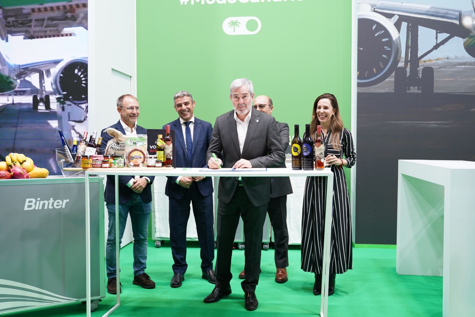 El Gobierno de Canarias y Binter firman en FITUR un acuerdo estratégico para reforzar la presencia del producto canario a bordo
