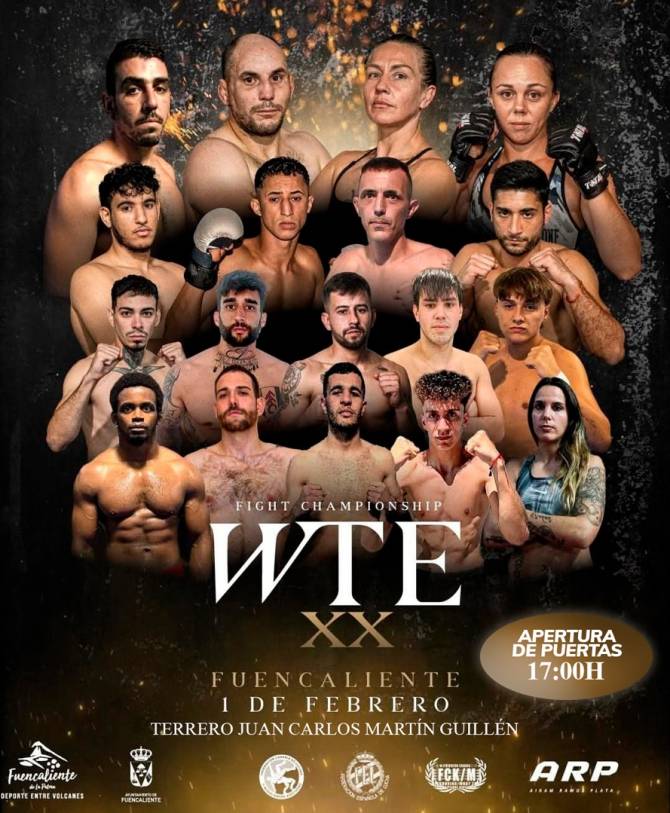 El Ayuntamiento de Fuencaliente trae al municipio la celebración del WTE Fight Championship, que en su vigésima cita ofrecerá la tarde de este sábado el espectáculo de las artes marciales mixtas con luchadores profesionales de distintas disciplinas.