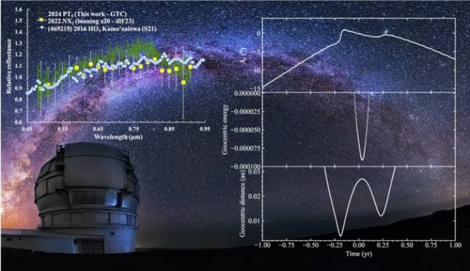Para el análisis de su superficie, los investigadores españoles realizaron un seguimiento astrométrico -toma de imágenes- de septiembre de 2024 a enero de 2025 con los telescopios TT1 y TT2 (Two-meter Twin Telescope) y TST (Transient Survey Telescope), gestionados por Light Bridges en colaboración con el IAC en el Observatorio del Teide. Además, se obtuvieron espectros y fotometría -curva de luz- con el Gran Telescopio CANARIAS (GTC) de 10.4m en el Observatorio del Roque de los Muchachos en septiembre de 2024. Los cálculos asociados al estudio de la dinámica de este objeto se realizaron en la UCM.