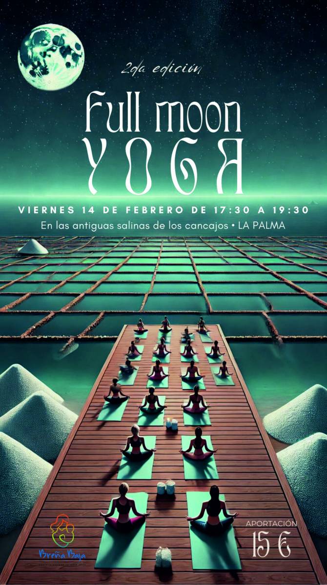 El viernes 14 de febrero, de 17.30 a 19.30 hs, en las Antiguas Salinas de Los Cancajos se celebra, de nuevo, una sesión especial de yoga bajo la Luna Llena. A través de una práctica de Vinyasa Yoga. Colabora el Ayuntamiento de Breña Baja.