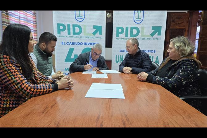 El presidente insular, Sergio Rodríguez, y el alcalde del municipio José Ángel Sánchez han firmado el convenio de colaboración entre las dos entidades públicas para el desarrollo de diversos proyectos enmarcados en este programa en un total de cuatro anualidades.