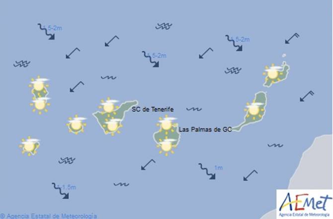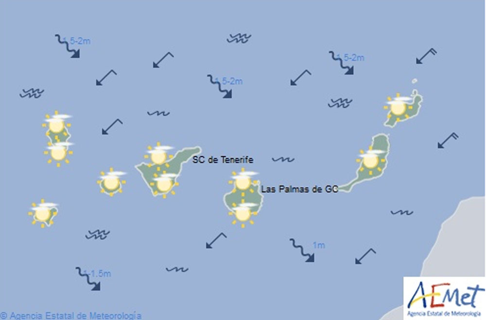 El viento soplará del Nordeste flojo en general entre 15 y 20 kilómetros por hora.