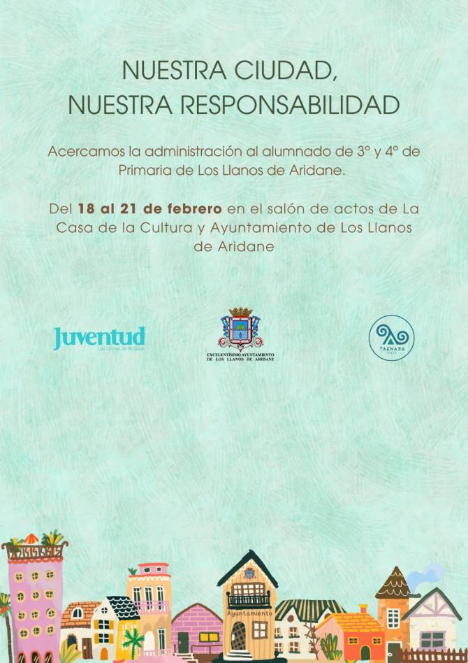 El Ayuntamiento de Los Llanos de Aridane pone en marcha la segunda edición del proyecto educativo Nuestra Ciudad, Nuestra Responsabilidad, una iniciativa que busca acercar el funcionamiento del Consistorio a los más jóvenes y fomentar la implicación de los niños y niñas en el cuidado de su municipio.