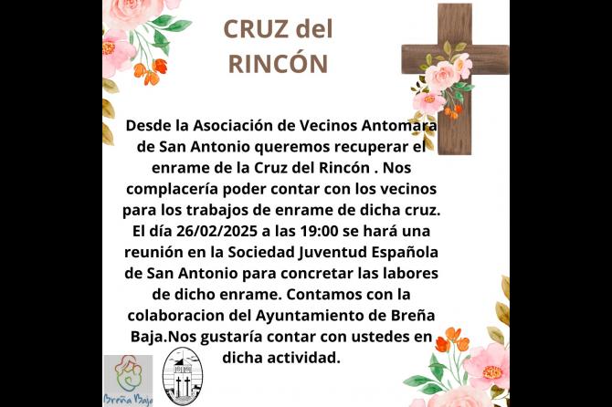 La Cruz del Rincón no se enramaba desde el año 2016 (9 años) y es una de las Cruces que cuenta con mas tradición y solera en el municipio de Breña Baja. Ya en el año 1994 se había recuperado esta Cruz con un grupo de vecinos hasta el mencionado año 2016.