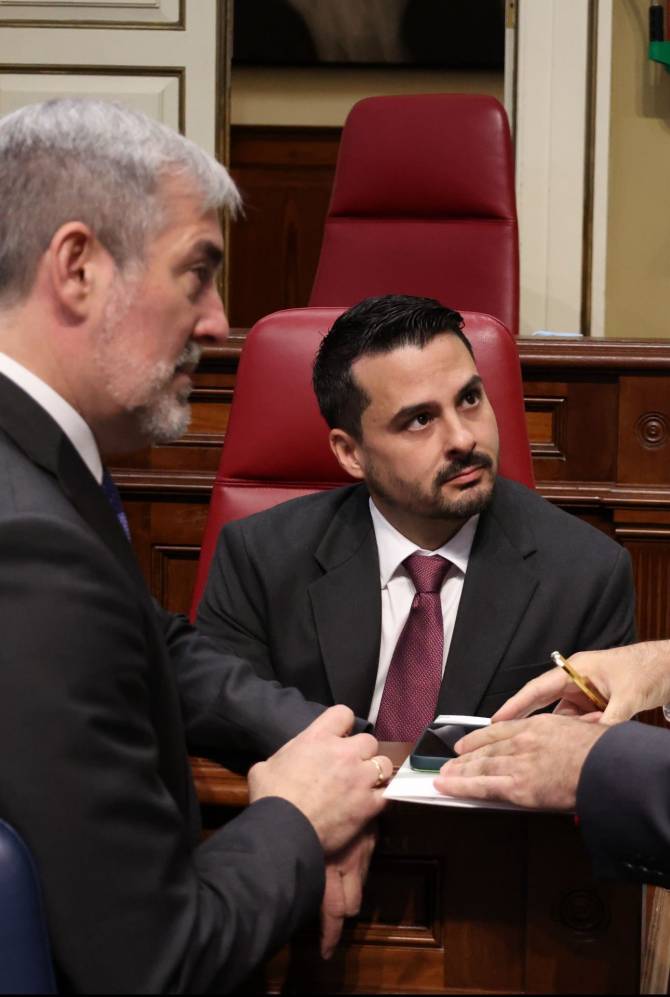 El presidente del Grupo Parlamentario Nacionalista (CCa), David Toledo Niz, ha intervenido en el Pleno del Parlamento para preguntar al presidente canario, Fernando Clavijo, por su valoración sobre el Fondo de Desarrollo de Canarias (FDCAN).