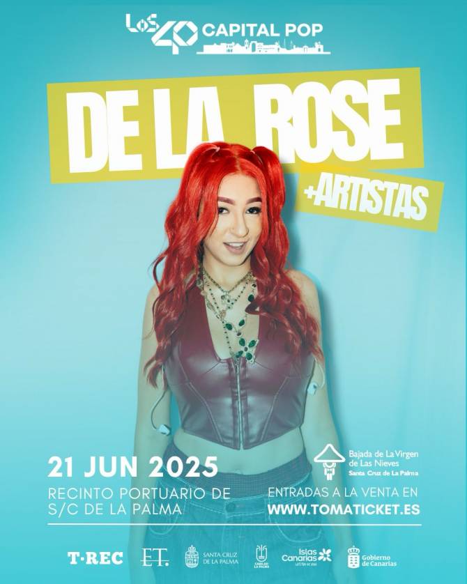 El evento más conectado con el público joven en el calendario de La Bajada de La Virgen de 2025, LOS40 Capital Pop, sigue revelando sorpresas. La cantante De La Rose, reconocida por éxitos como ¿Qué vas a hacer hoy? o Kyoto, se suma a la segunda edición de este festival, que este año formará parte de las fiestas lustrales. La artista se une al cantante argentino Trueno y dos artistas internacionales más aún por revelar, un hombre y una mujer, en un cartel que terminarán de completar cuatro nombres nacionales y canarios.