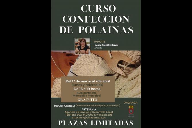 Las inscripciones pueden realizarse a través del Área de Artesanía de la Agencia de Empleo y Desarrollo Local. Para más información, los interesados pueden contactar llamando al teléfono 922 440 003 (Extensión 205) o enviando un correo electrónico a artesania@villademazo.es .