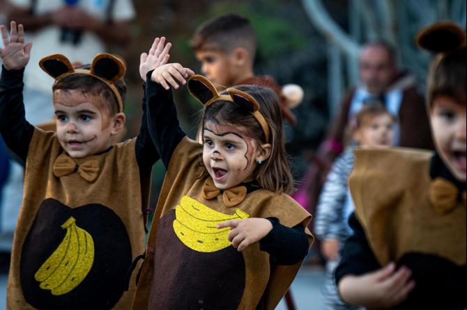 Ataviados con coloridos disfraces, las mayor parte de ellos relacionados con el mundo selvático, centros escolares, asociaciones, comparsas y otras entidades, recorrieron bajo el lema “La Selva Mágica”, la Travesía de Los Cancajos desde el Paseo Charco del Lino hasta el Parque de Los Cardones (Calle La Corvina).