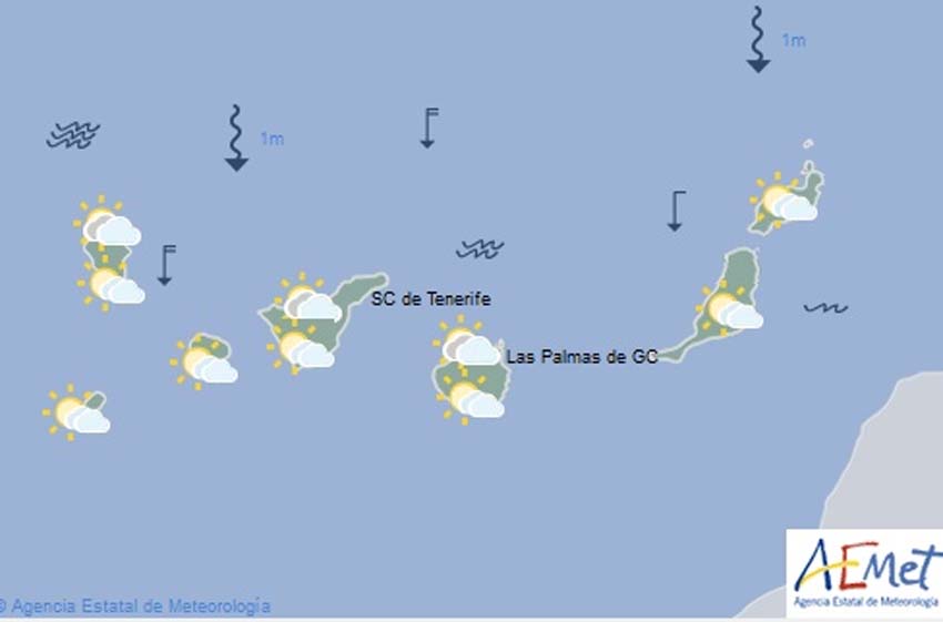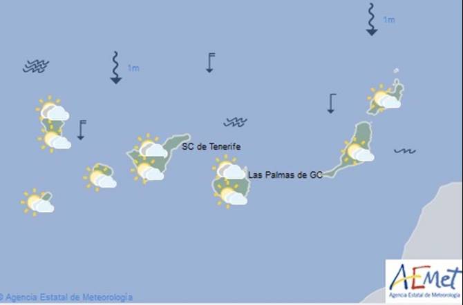 El viento de dirección variable con predominio de la componente Norte, flojo, en general; viento de componente Sur en medianías.