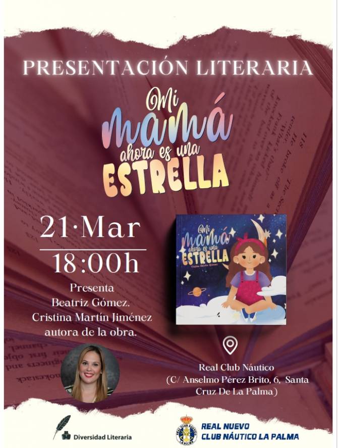 El viernes 21 de marzo en la Sede Social del Real Nuevo Club Náutico de Santa Cruz de La Palma, a las 18:00 horas tendrá lugar la presentación del libro/cuento infantil “MI MAMÁ AHORA ES UNA ESTRELLA”. Entrada Libre.