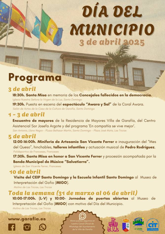 Toda la programación está disponible en la web municipal www.garafia.es, redes sociales y también a través del canal oficial de WhatsApp del Ayuntamiento de la Villa de Garafía.