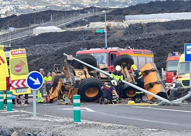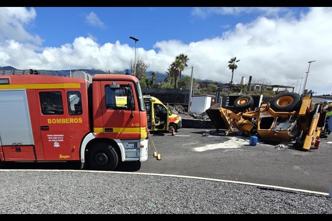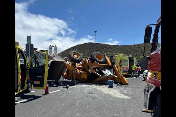 A primera hora de la tarde de hoy, una máquina retroexcavadora volcó en la carretera LP-213, conocida como la carretera nueva entre La Laguna y Las Norias, dejando atrapado a su conductor. Ante la emergencia, efectivos del Parque Laguna se desplazaron rápidamente al lugar del accidente para proceder a la excarcelación del afectado.