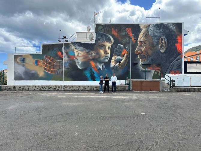 Breña Baja presenta un mural que celebra la conexión intergeneracional en los pueblos