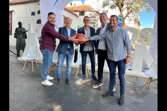 El acto de presentación, desarrollado en la Calle Real junto a las letras del municipio, contó con la presencia del alcalde de Los Llanos de Aridane, Javier Llamas; el concejal de Deportes, Víctor González; el presidente del Cabildo de La Palma, Sergio Rodríguez; y el presidente de la Federación Canaria de Baloncesto, Carlos Olano.