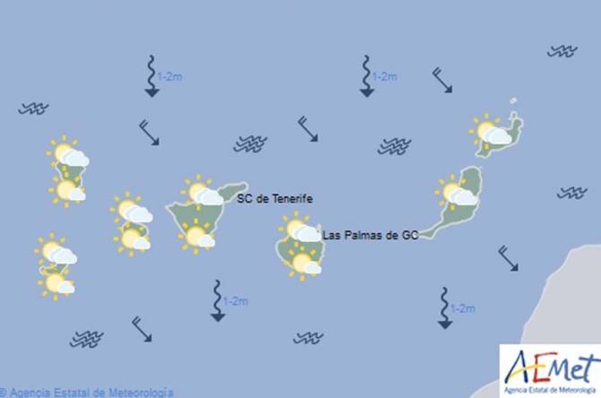 Las previsiones meteorológicas para este viernes en la isla de La Palma apuntan a la existencia de intervalos nubosos en el Norte con predominio de los claros en horas centrales; en altas cumbres, despejado.
