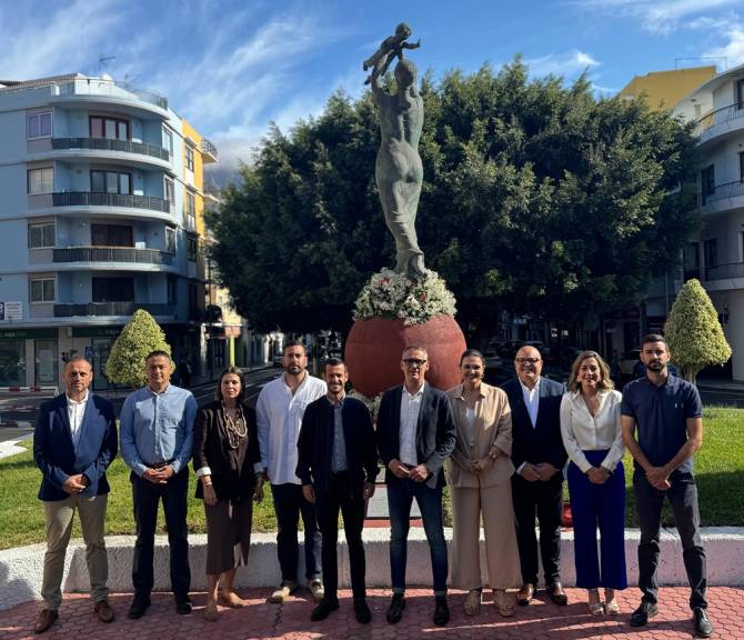 Además de Javier Llamas y Víctor González, representantes de todo el pleno del Ayuntamiento participaron en esta ofrenda, así como la consejera de Medio Ambiente del Cabildo de La Palma, Susa Armas.