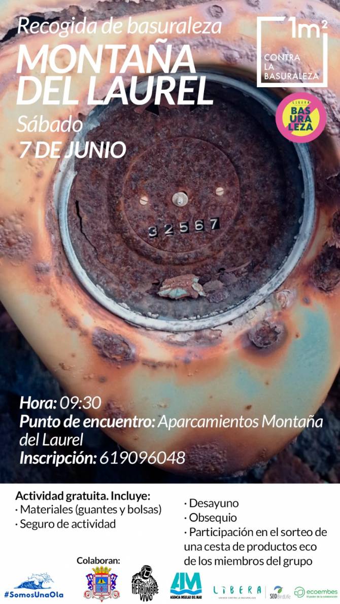 El Ayuntamiento de Los Llanos de Aridane organiza una jornada de recogida de residuos en la Montaña del Laurel, que se celebrará el sábado 7 de junio. La acción se ejecuta de la mano con el grupo #SomosUnaOla través del programa LIBERA y el proyecto nacional 1m² contra la basuraleza.