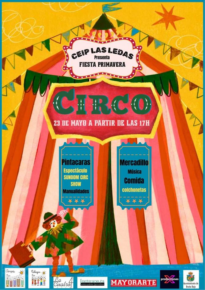 Bajo la atracción del “Circo” el viernes 23 de mayo a las 17 h. el Ceip Las Ledas organiza su “IX Fiesta de la Primavera” en las instalaciones del colegio, ubicado en el barrio de La Montaña (pasando Finca Amado). Cuenta con el apoyo del Ayuntamiento de Breña Baja y varias entidades y comercios.