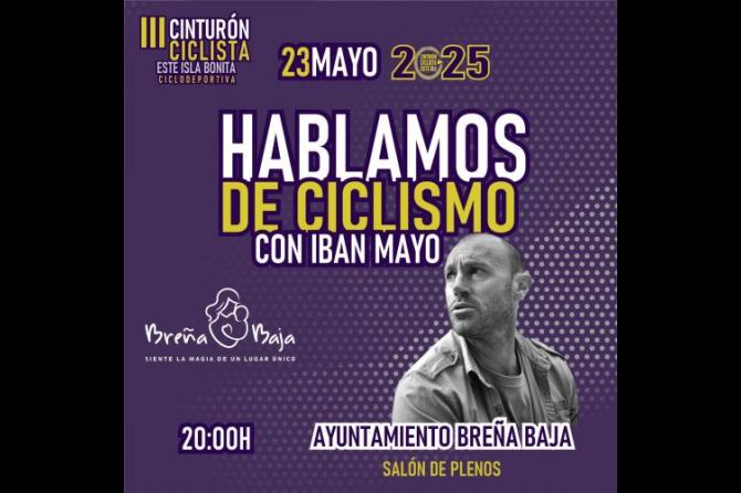 En el programa 2025 del “III Cinturón Ciclista Este Isla Bonita” contara con varias actividades en el municipio de Breña Baja. Entre las misma una charla-coloquio “Hablamos de Ciclismo” con Iban Mayo a las 20 hs en el salón de plenos del Ayuntamiento de Breña Baja.
