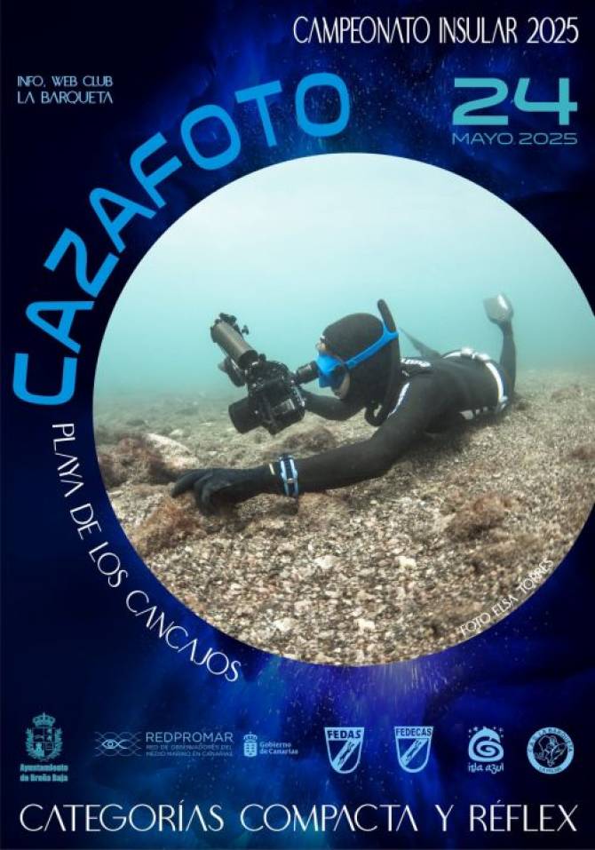 El sábado 24 de mayo tendrá lugar en la Playa de Los Cancajos el Campeonato Insular Individual “Cazafotosub 2025”, por parte del club de actividades subacuaticas “La Barqueta” de la Isla de La Palma y la colaboración del Ayuntamiento de Breña Baja y varias entidades.