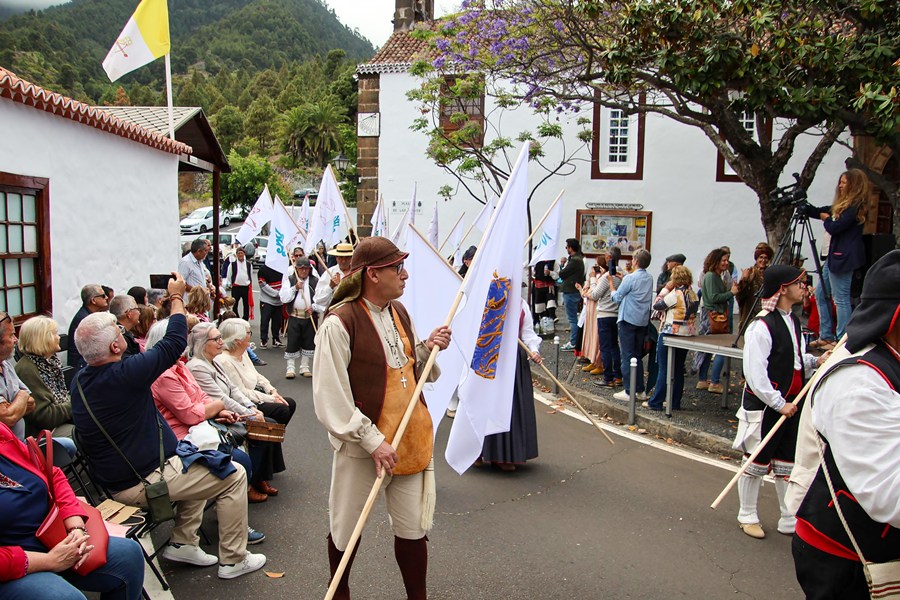 Estas banderas, que antaño acompañaban los traslados quinquenales del trono de la Virgen, fueron recuperadas gracias al esfuerzo conjunto de la Asociación de Vecinos Carías, Juan Carlos Martín, José Roberto Martín, Francisco Ildefonso Rodríguez Afonso, Javier Cruz Álvarez y Fernando Marante. Su presentación pública corrió a cargo de la Agrupación Folclórica Alfaguara y la Asociación Padisbalta, que dotaron al acto de emoción, sentido colectivo y belleza estética.