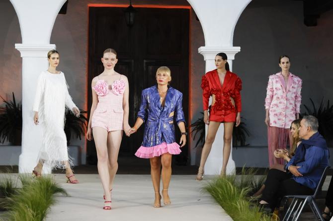 La firma Waleska Morin se sumergió en una inspiración artística y profunda, donde la paleta cromática del pintor James Ensor envolvió una colección cargada de simbolismo visual. Las prendas asimétricas, los cortes cut-out y la explosión floral en todas sus formas convirtieron esta propuesta en un vivo retrato del universo del artista y de su obra más conocida. Inspirados por el arte del ballet y los musicales de época, los diseños celebraron el movimiento, el color y la expresividad. Rosas, amarillos, blancos y otros tonos cálidos bailaron al sol como una melodía que atravesó el tiempo.