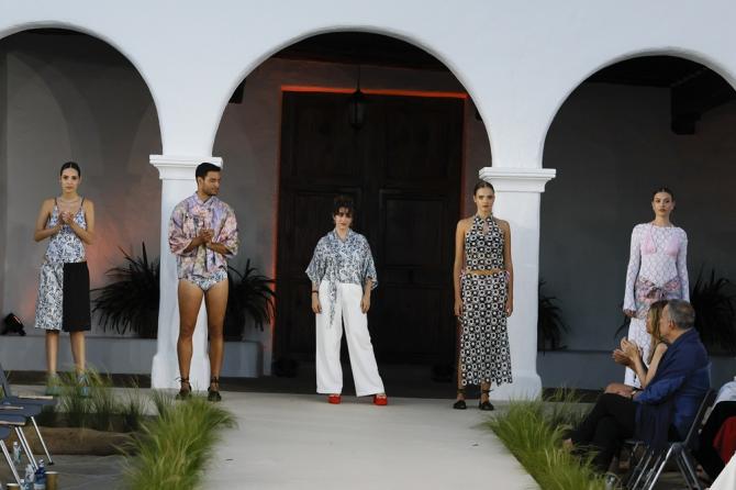 La diseñadora tras la firma Shamelu presentó SIJAK: INICIO, una colección de moda baño que representó un nuevo capítulo en su universo creativo. Inspirada en la moda tradicional asiática y reinterpretada con códigos actuales, la colección combinó formas geométricas y orgánicas en un lenguaje visual que transmitió intencionado caos y fluidez. El regreso del estampado de marca, las joyas artesanales de Mararte y el calzado de Ban completaron una propuesta que celebró la dualidad entre pasado y presente.