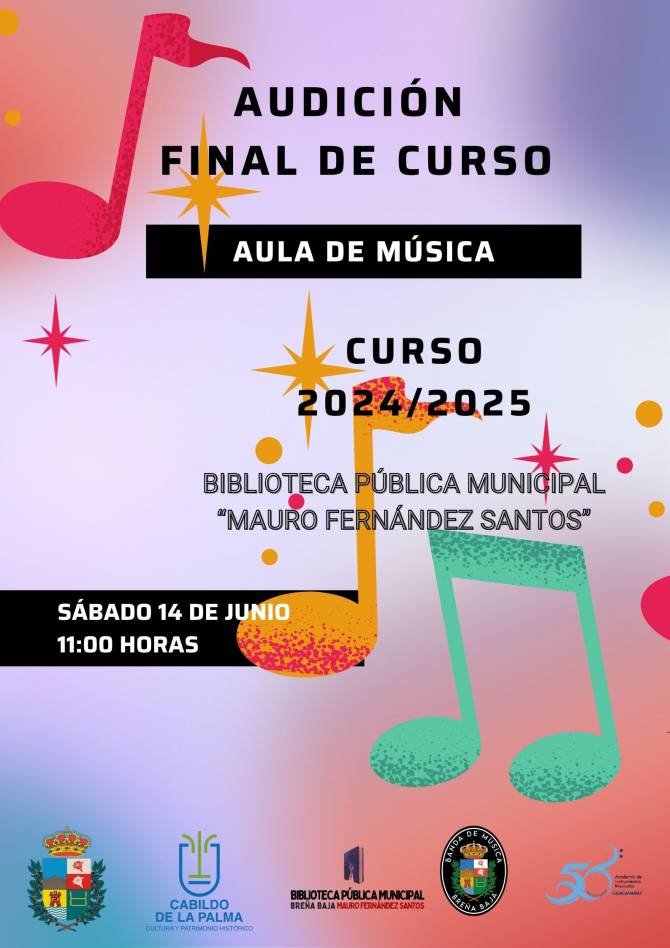 El Aula de Música de Breña Baja el sábado 14 de junio presenta una Audición del alumnado en la Biblioteca Pública Municipal “Mauro Fernández Santos” de San Antonio a las 11 horas, con motivo de la finalización del curso.