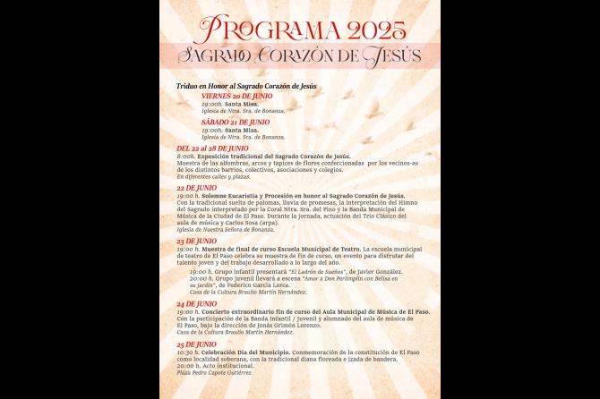 Con una combinación de tradición religiosa y expresión artística popular, la Semana Cultural del Sagrado Corazón de Jesús de El Paso promete una experiencia inolvidable para residentes y visitantes, reafirmándose como una de las celebraciones más esperadas del año en La Palma.