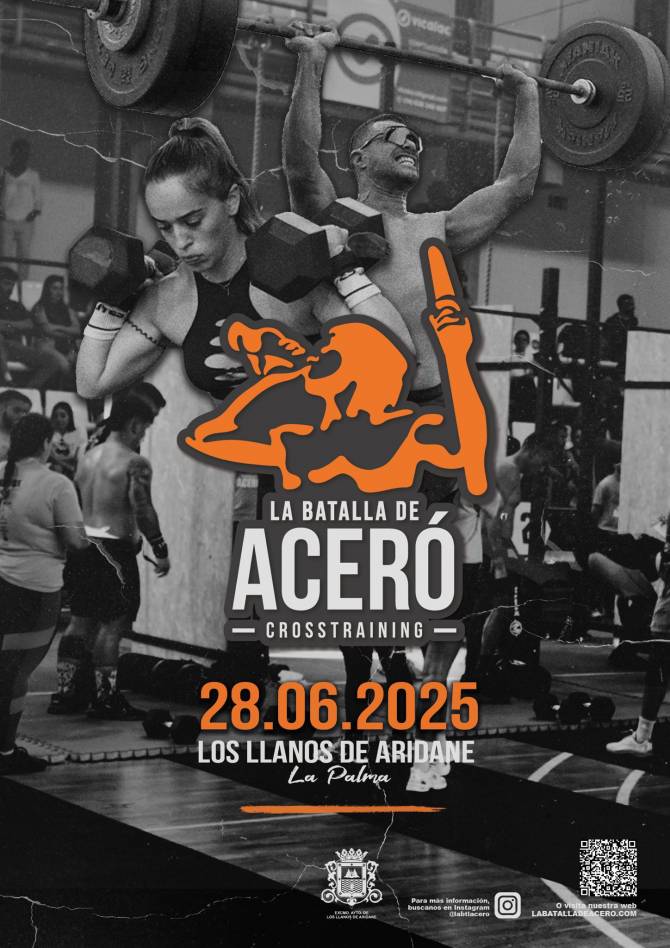 El Ayuntamiento de Los Llanos de Aridane acoge este sábado, 28 de junio, la Batalla de Aceró, una de las competiciones de crosstraining por equipos más destacadas de Canarias. El evento reunirá a más de 100 atletas de todas las islas para disputar seis pruebas, incluida una en la piscina municipal, durante más de once horas de competición en el complejo deportivo del Estadio Municipal Aceró.