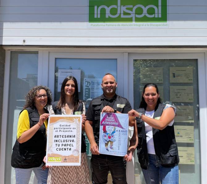 La Plataforma Palmera de Atención Integral a la Discapacidad (Indispal) estará presente, por segundo año consecutivo, en la Feria Insular de Artesanía que se celebrará del 4 al 8 de julio en el Puerto de Santa Cruz de La Palma. En el stand se exhibirán las piezas realizadas por las personas usuarias de las siguientes entidades: la Asociación Niños Especiales de La Palma, la Asociación Padisbalta, el Centro Ocupacional de Breña Alta, el Centro Ocupacional Garehagua, el Centro Ocupacional La Tisera, el Centro Ocupacional La Traviesa (pertenecientes a la Fundación Isonorte) y Funcataes.