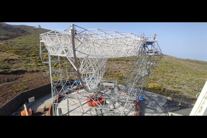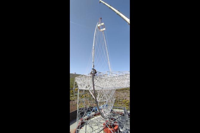 El LST-2 completa la instalación de su estructura de soporte en el Observatorio del Roque de los Muchachos