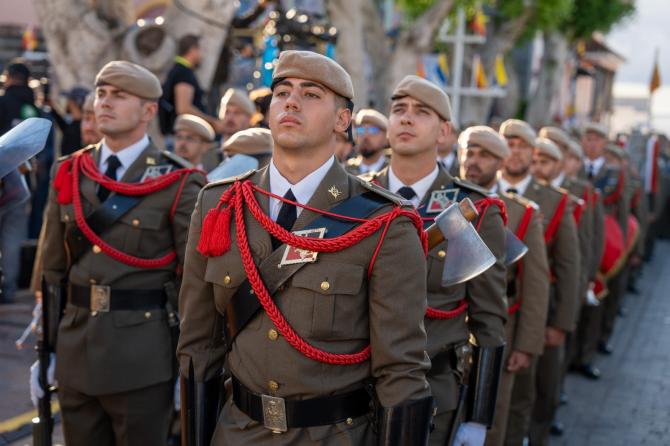 "¡Artillero! ¡Saca la plomada del cañón! ¡Fuego!", se escucha desde el castillo de la Virgen, marcando el instante cuando las defensas simbólicas de la ciudad ceden paso a la entrada de la Patrona mientras que el buque de la armada española Meteoro, anclado frente a la costa capitalina, también rendía homenaje desde el mar con el lanzamiento de salvas.