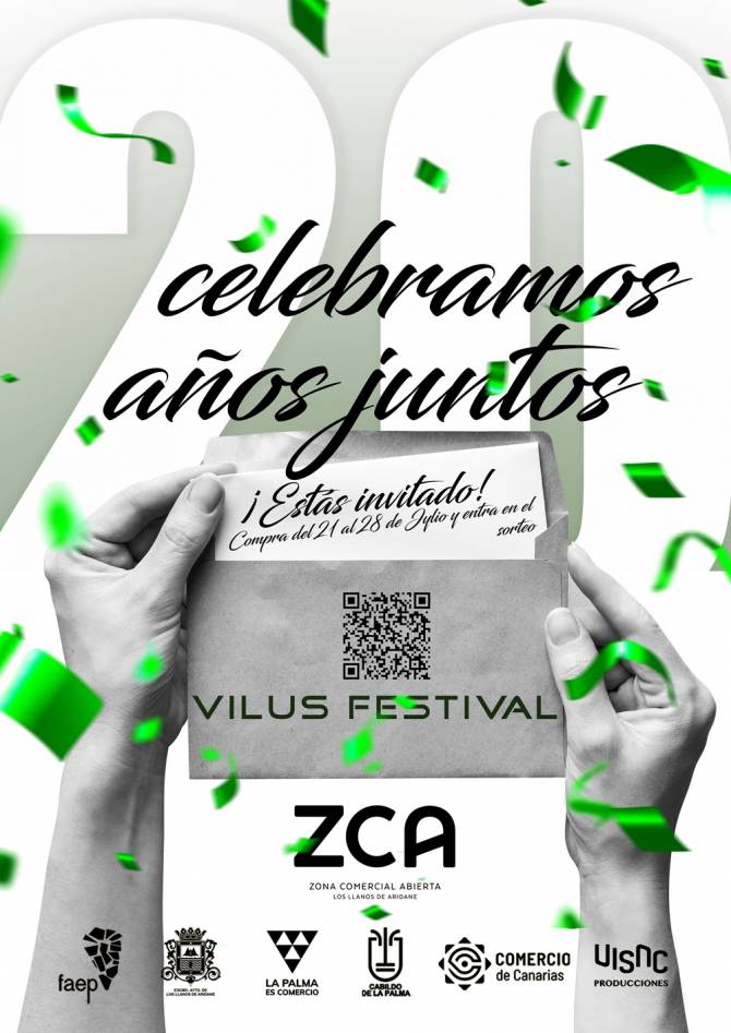 Como parte de la celebración, ZCA lanza un sorteo entre los clientes que realicen compras en los comercios asociados entre el 21 y el 28 de julio. Se sortearán 10 entradas generales y 2 entradas VIP dobles para el Vilus Festival, uno de los eventos musicales más esperados del verano en La Palma.