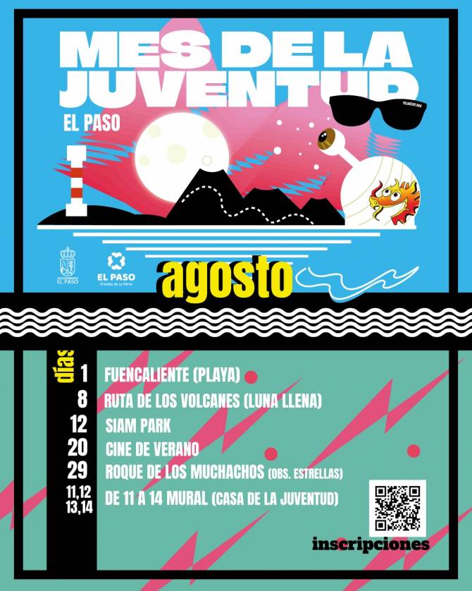Para inscribirte en las diferentes atividades del Mes de la Juventud, visita el siguiente enlace: https://elpaso.es/verano-joven-2025/