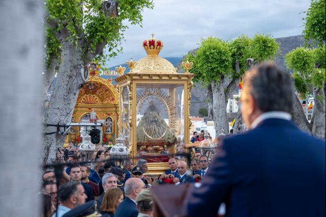 En primer lugar, reconoce la labor incansable de los Cuerpos y Fuerzas de Seguridad del Estado, así como la entrega de los voluntarios y voluntarias, que ofrecieron su tiempo y esfuerzo con generosidad para que la fiesta transcurriese con orden, seguridad y esplendor. Su implicación ha sido clave para mantener el carácter único de este acontecimiento. También destaca el papel de los ciudadanos y ciudadanas palmeros, verdaderos protagonistas, que con entusiasmo y participación activa han hecho posible que la Bajada de la Virgen de las Nieves siga intacta en esencia y belleza.