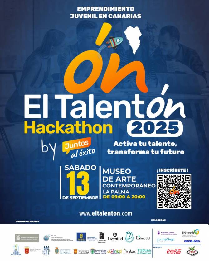 Santa Cruz de La Palma será sede el próximo 13 de septiembre de 'El Talentón 2025', una iniciativa regional dirigida a jóvenes de entre 16 y 35 años con el objetivo de potenciar su talento, fomentar la innovación y generar soluciones a retos actuales. El evento se desarrollará en el Museo de Arte Contemporáneo de la capital palmera, en horario de 9:00 a 20:00 horas, y forma parte de un recorrido por todas las islas que culminará con una final regional el 27 de septiembre en Tenerife.