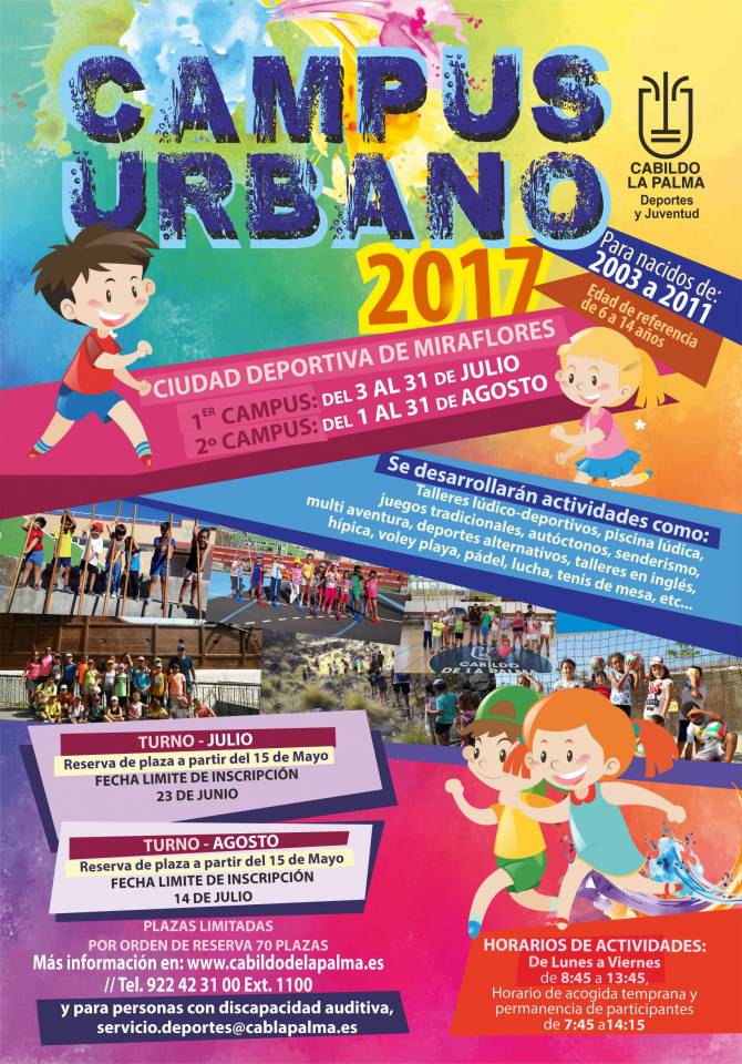 La celebración del Campus Urbano 2017, que tendrá lugar en la Ciudad Deportiva de Miraflores, está dirigido a menores nacidos entre 2003 y 2011, ambos inclusive, y se desarrollará de lunes a viernes en horario de 7:45 a 14:15 horas.