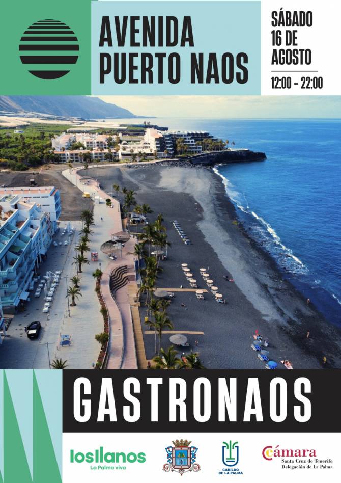 El Ayuntamiento de Los Llanos de Aridane, en colaboración con la Cámara de Comercio de La Palma, organiza Gastronaos, un evento que convertirá la avenida de Puerto Naos en un gran espacio gastronómico y cultural. La cita, de acceso gratuito, se celebrará el sábado 16 de agosto, de 12:00 a 22:00 horas.
