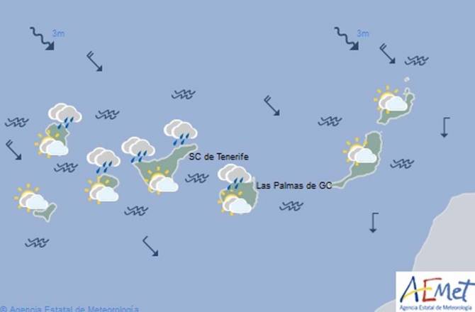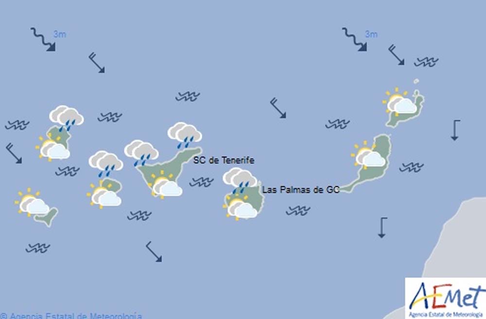 Las previsiones meteorológicas para este viernes en la isla de La Palma apuntan a que los cielos estarán nuboso en general, y muy nuboso con lluvias débiles en el Este, más intensas y persistentes en zonas del interior.
