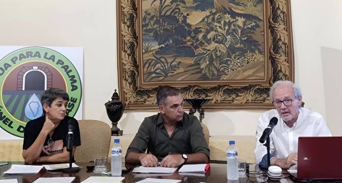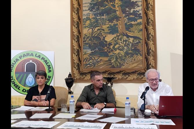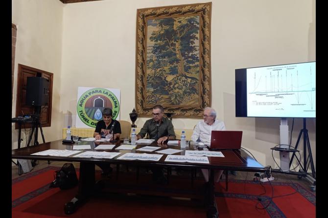 Así lo manifestaron en rueda de prensa este viernes 5 de septiembre los representantes de la Asociación Agua para La Palma Pedro Monzón y Mónica Riverol, junto al ingeniero, especializado en hidráulica y energética, Carlos Soler Liceras, asesor de Agua para La Palma y director del 90 % de la obra del Túnel de Trasvase entre 1996 y 2000.