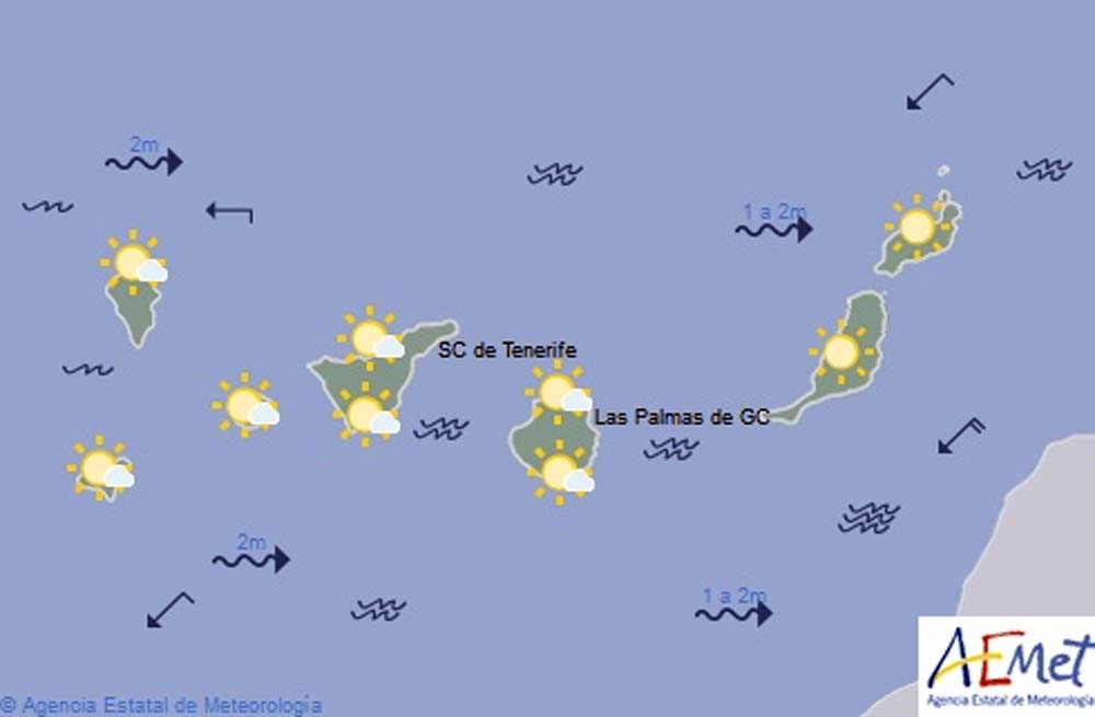 Las temperaturas mínimas con pocos cambios, y máximas en ascenso que será ligero en costas y moderado en medianías y zonas altas, situándose entre 25 y 18 grados centígrados.