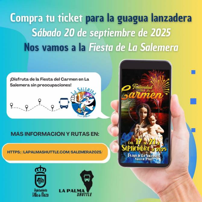 Las personas que tengan interés en contratar el servicio de lanzadera habilitado para esa jornada, podrán hacerlo a través del enlace https://lapalmashuttle.com/salemera2025/