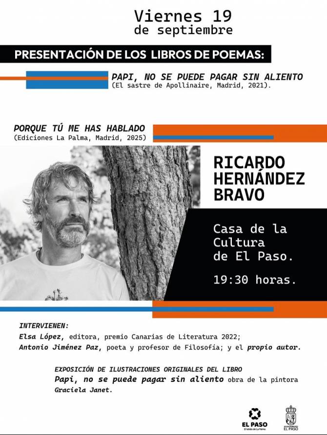 El alcalde de El Paso, Eloy Martín, señala que “la literatura, como la memoria, nos une y nos trasciende. Siempre es un inmenso honor recibir a Ricardo Hernández Bravo, reconocido paisano en el ámbito de las letras y la enseñanza, cuya obra nos invita a mirar el mundo que nos rodea y a encontrarnos como comunidad”.