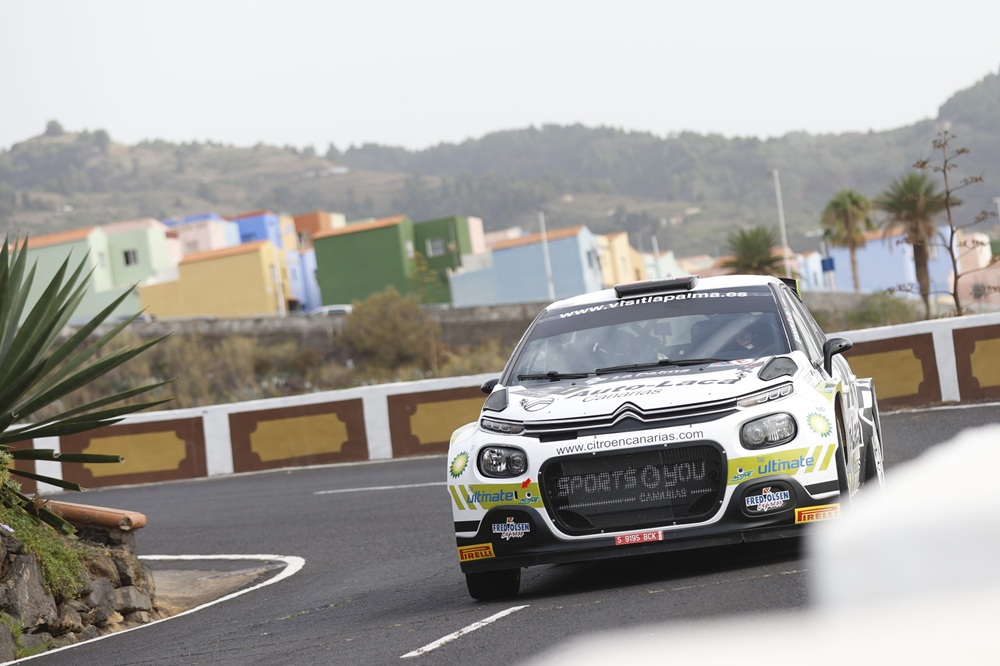 La cita organizada por la Escudería La Palma Isla Bonita, con preinspección para el Campeonato de España de Rallies de Asfalto (CERA), comenzó en la noche del viernes con tres especiales. En la primera de ellas, la de ‘La Magia de Las Breñas a San Isidro’, el campeón de Canarias del 2023 realizó una declaración de intenciones. Estableció el mejor registro y se aupó al liderato. Sin embargo, la jornada la finalizaría en la segunda posición, pero a tan solo dos décimas de la cima de la clasificación.