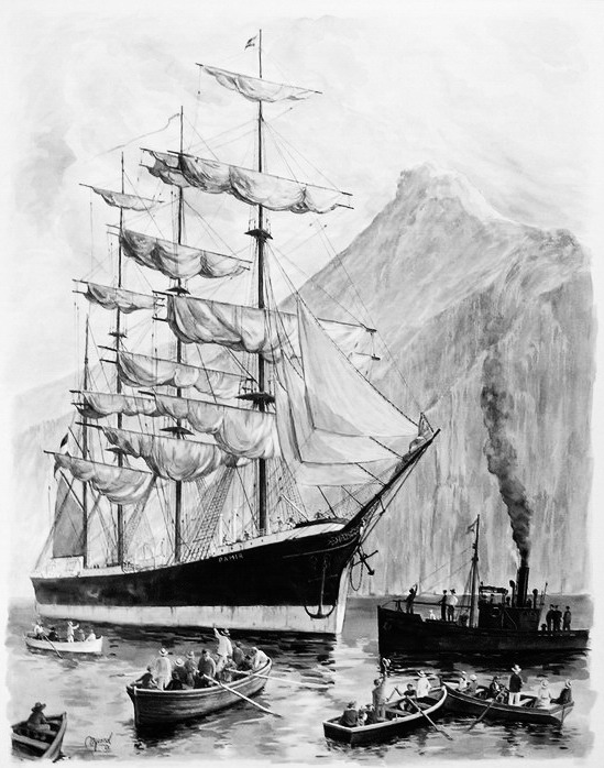 El mediodía del 4 de octubre de 1914 apareció en el horizonte un punto blanco que, con la rapidez que le imprimían sus 3.000 metros cuadrados de velas hinchadas por el viento, rápidamente se convirtió en un espléndido velero en demanda del puerto palmero. El periodista Juan Antonio Padrón Albornoz recogió las palabras de un testigo del acontecimiento, José Manuel Sicilia, «¡Venía abriendo la mar!», tal era la premura del barco alemán por encontrar refugio y evitar un encontronazo con algún buque de la Royal Navy.